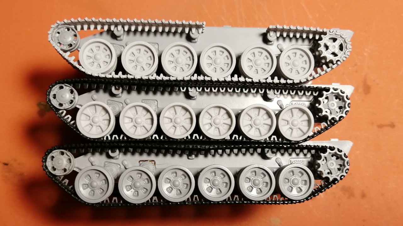 1. Заменить ведущее на такое же из набора Мста. Поздние траки требуют новых зубъев. Они должны быть по типу Т-80/Мста.