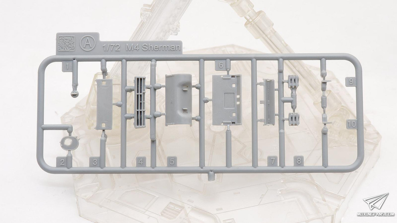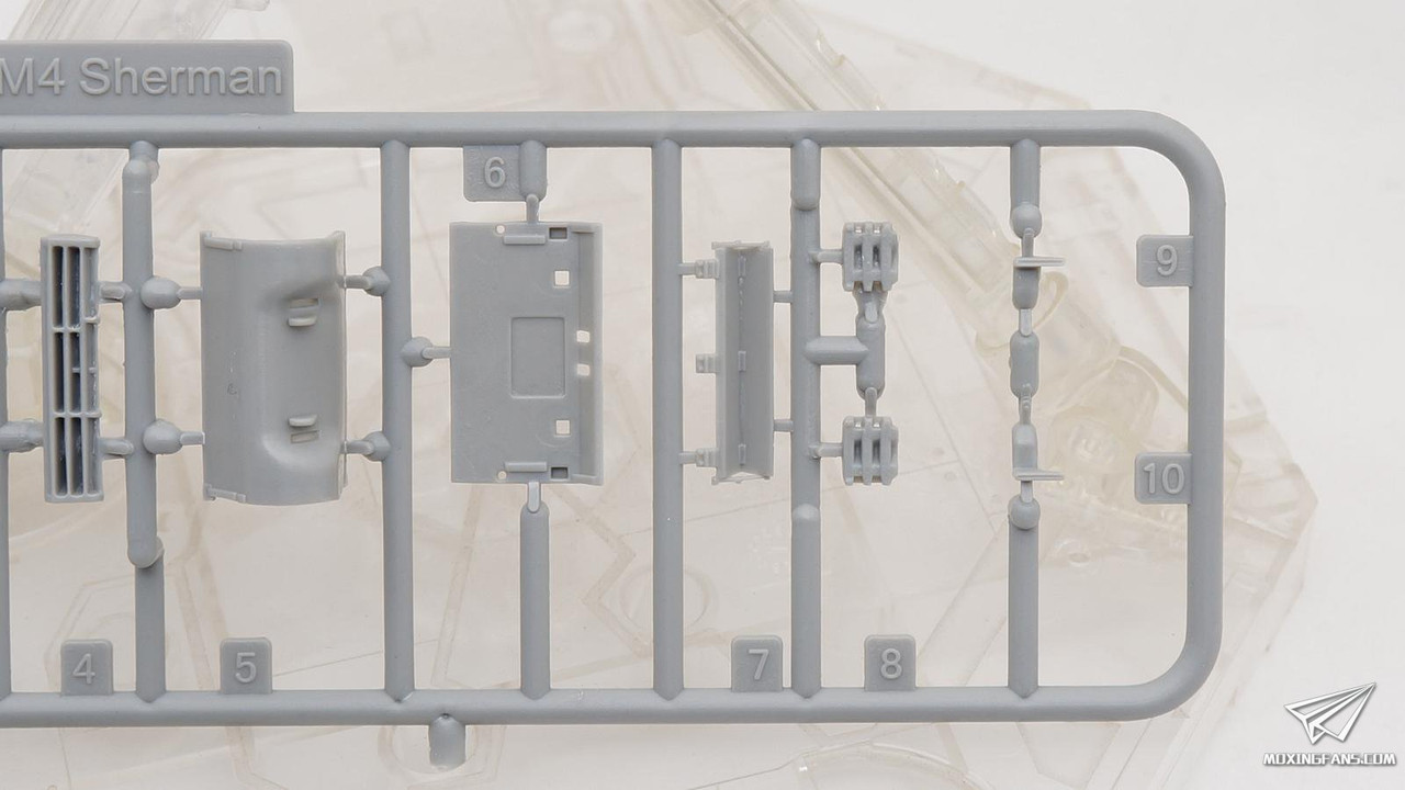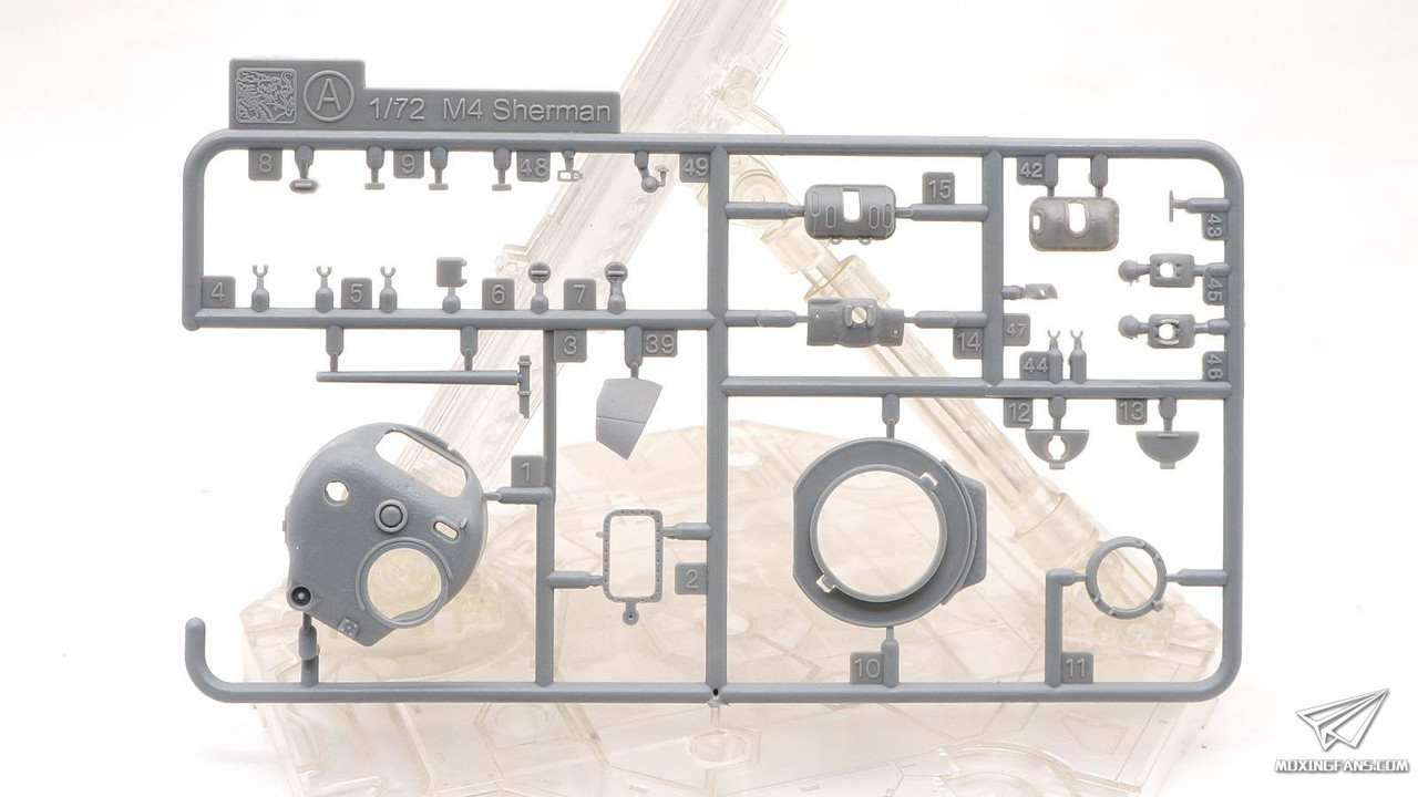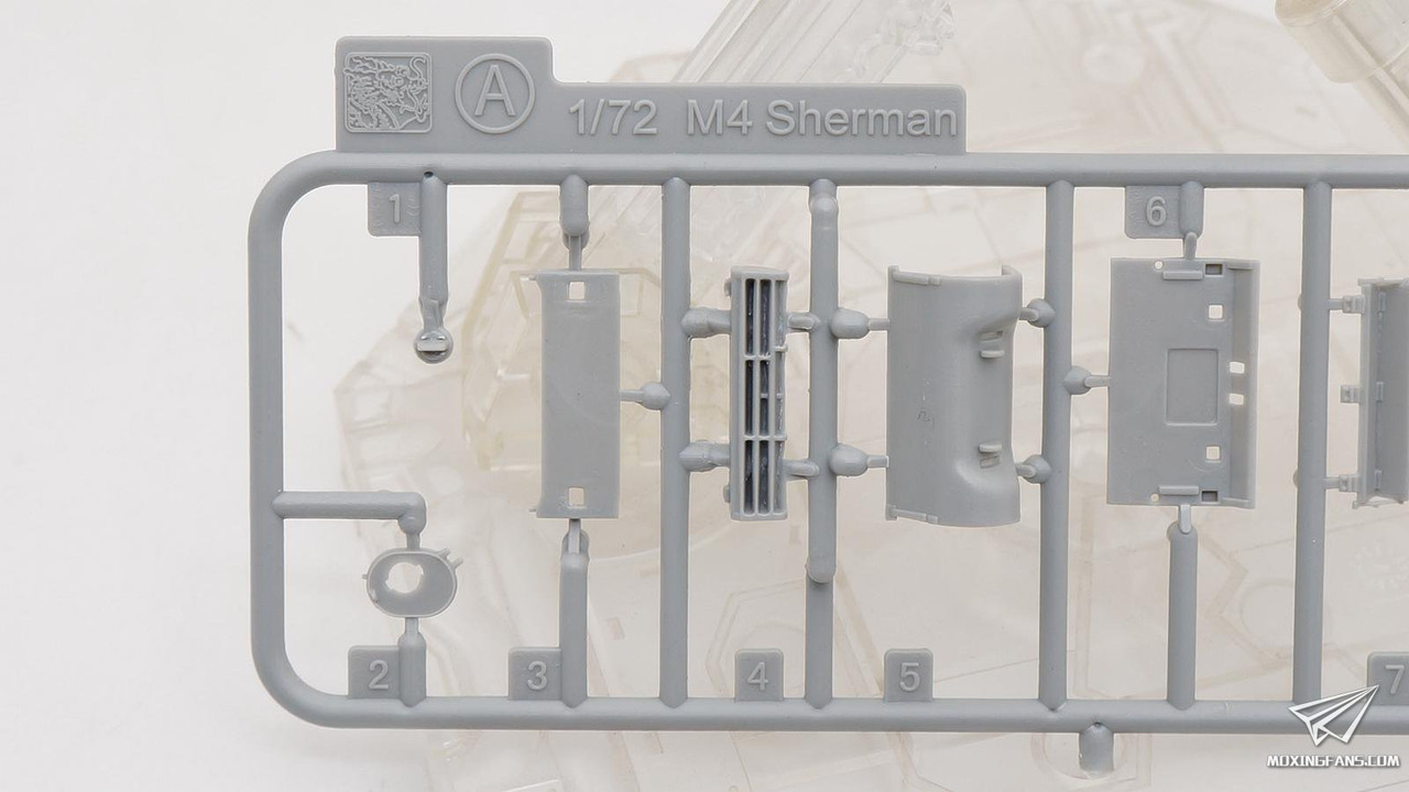 Содержимое коробки с M4A3 Sherman Calliope по "гибридной" технологии.