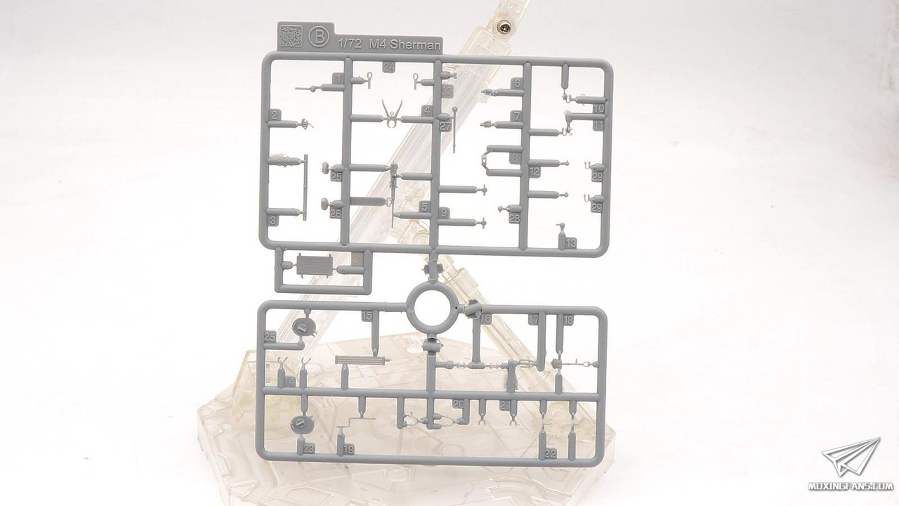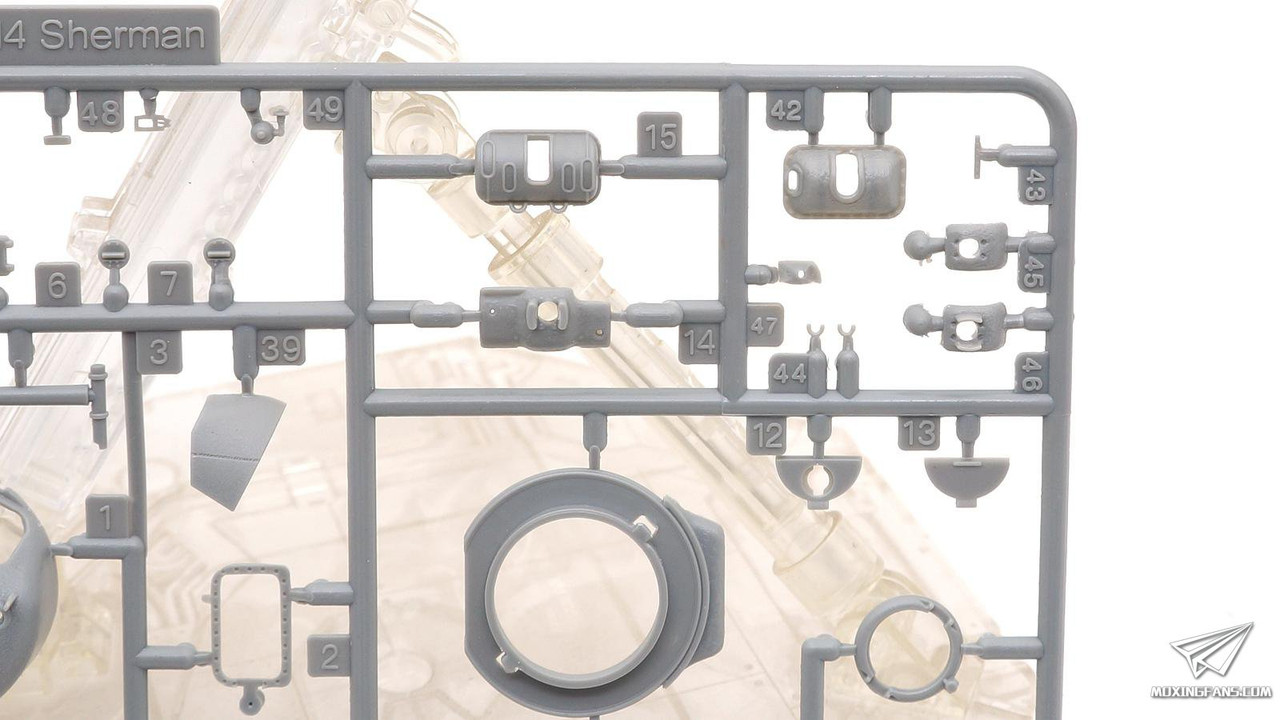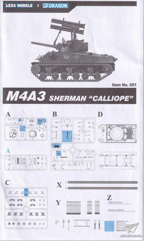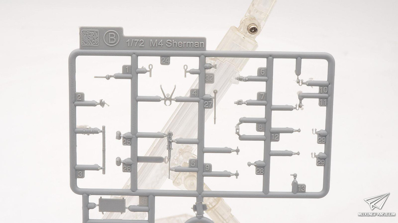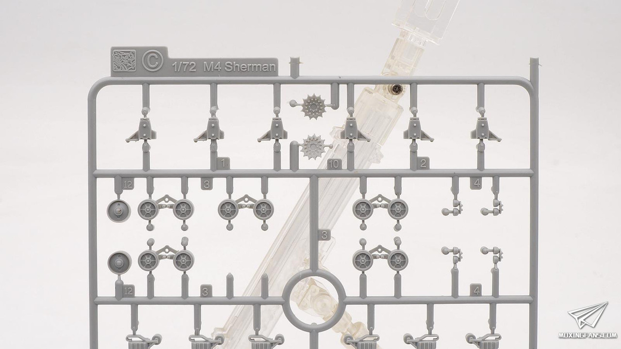 Содержимое коробки с M4A3 Sherman Calliope по "гибридной" технологии.