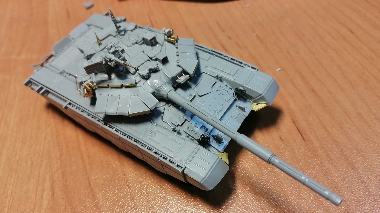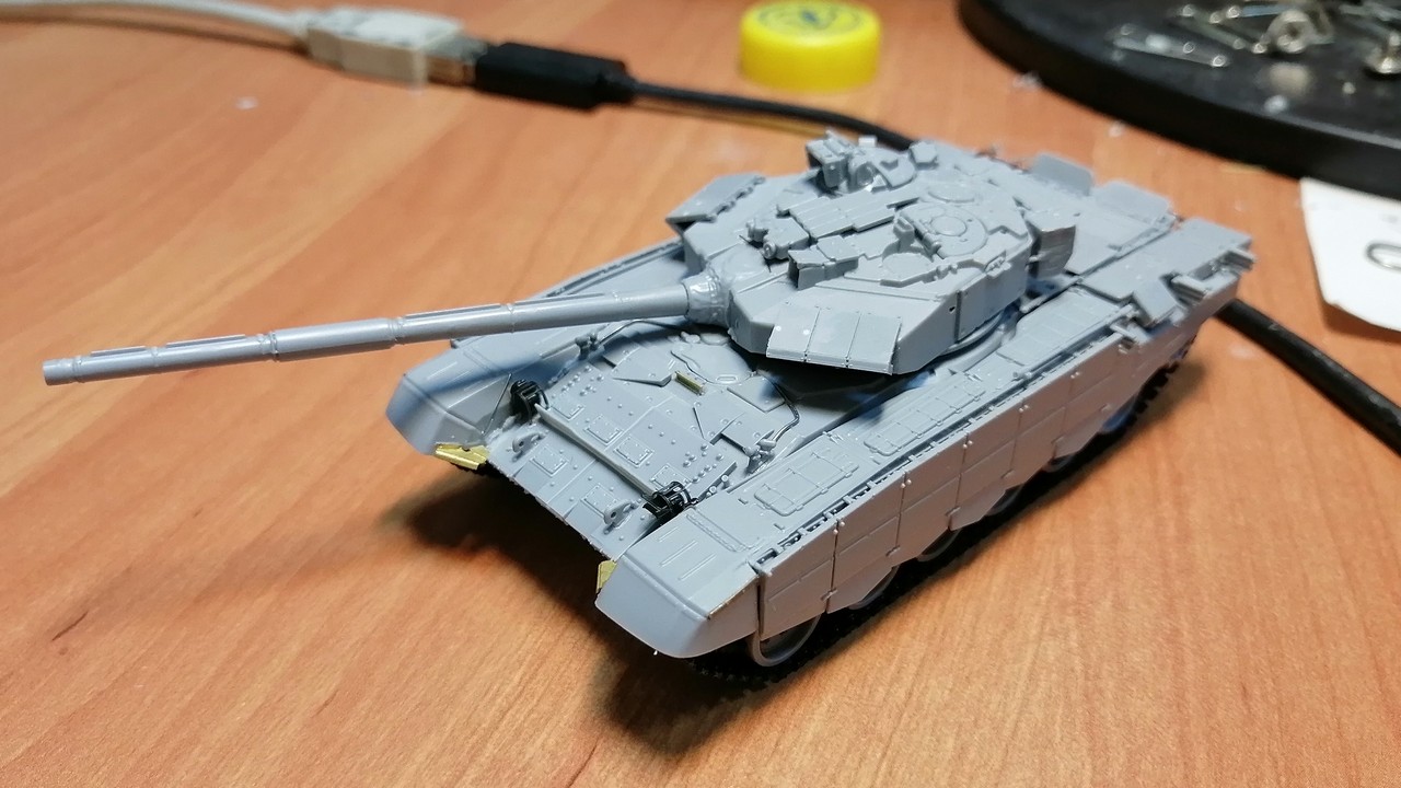 Полку моделей, ожидающих какой-нибудь мелочи для того, чтобы модель можно было отдать в окраску, прибыло! Т-90С армии Ирака. Дело за малым - кондиционер на левый борт башни.