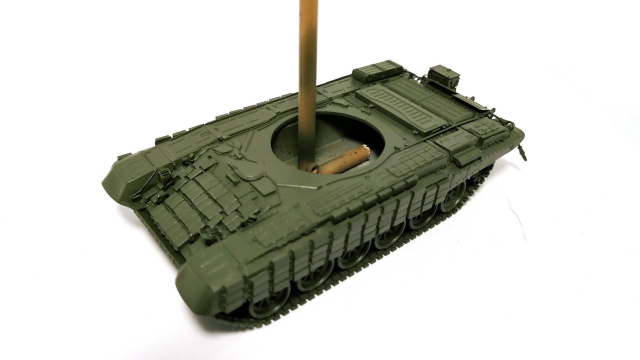 Задул Т-80Б и Т-72АВ в базу - свой любимый "сатин" от Ревелл. Теперь предстоит сначала обоим "нарисовать" ходовую - траки и "обрезинку" на катках, а потом один "старить", а второй - камуфлировать...