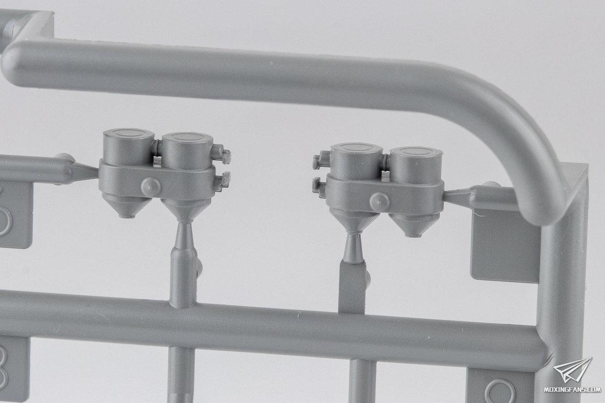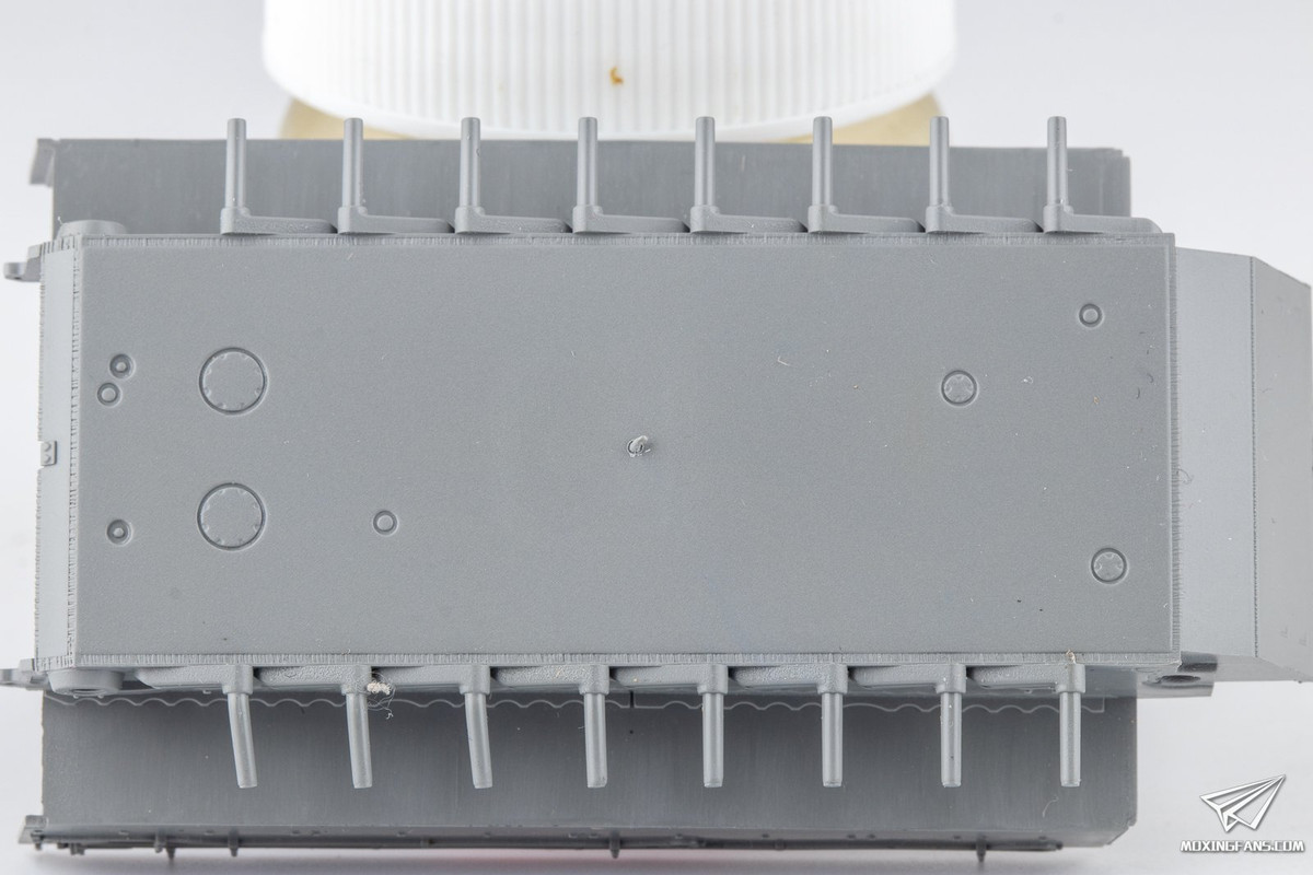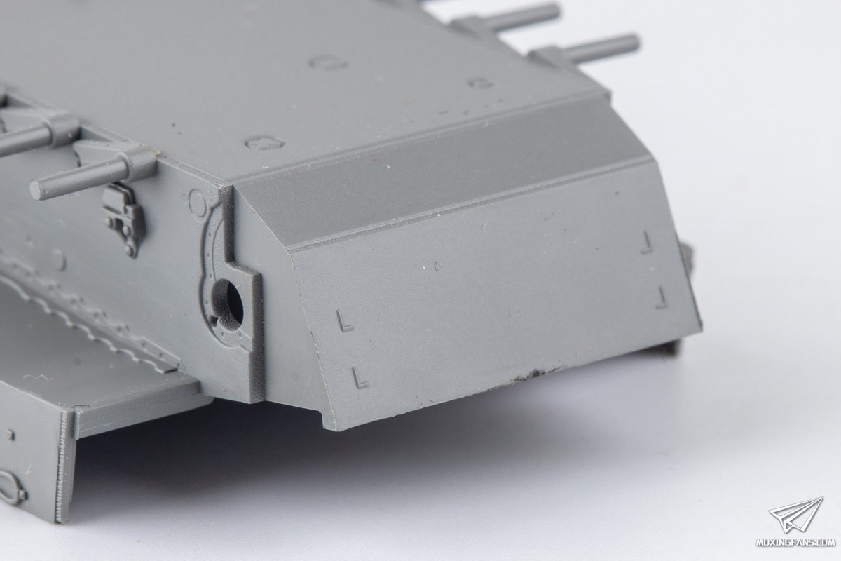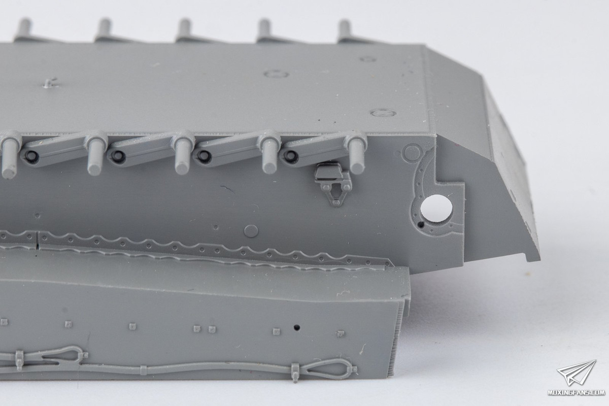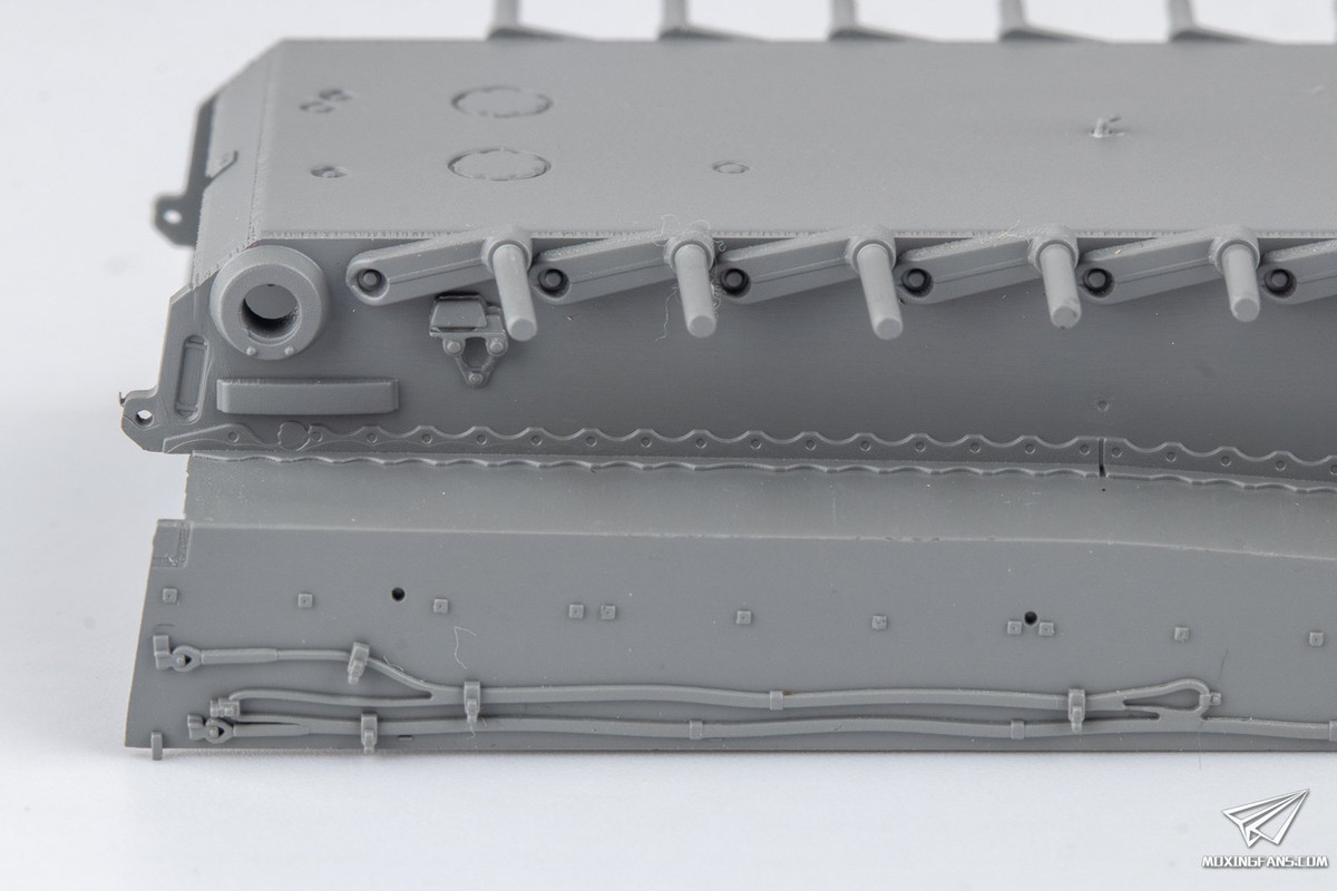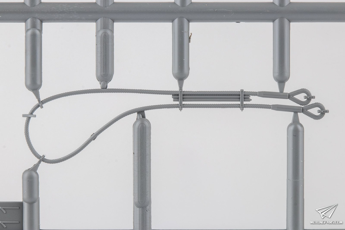 Буксировочный трос чуть ли не идеален для пластика, а тросик для натяжения гусеницы отлит на борту корпуса, гладкий и прямоугольный в сечении...