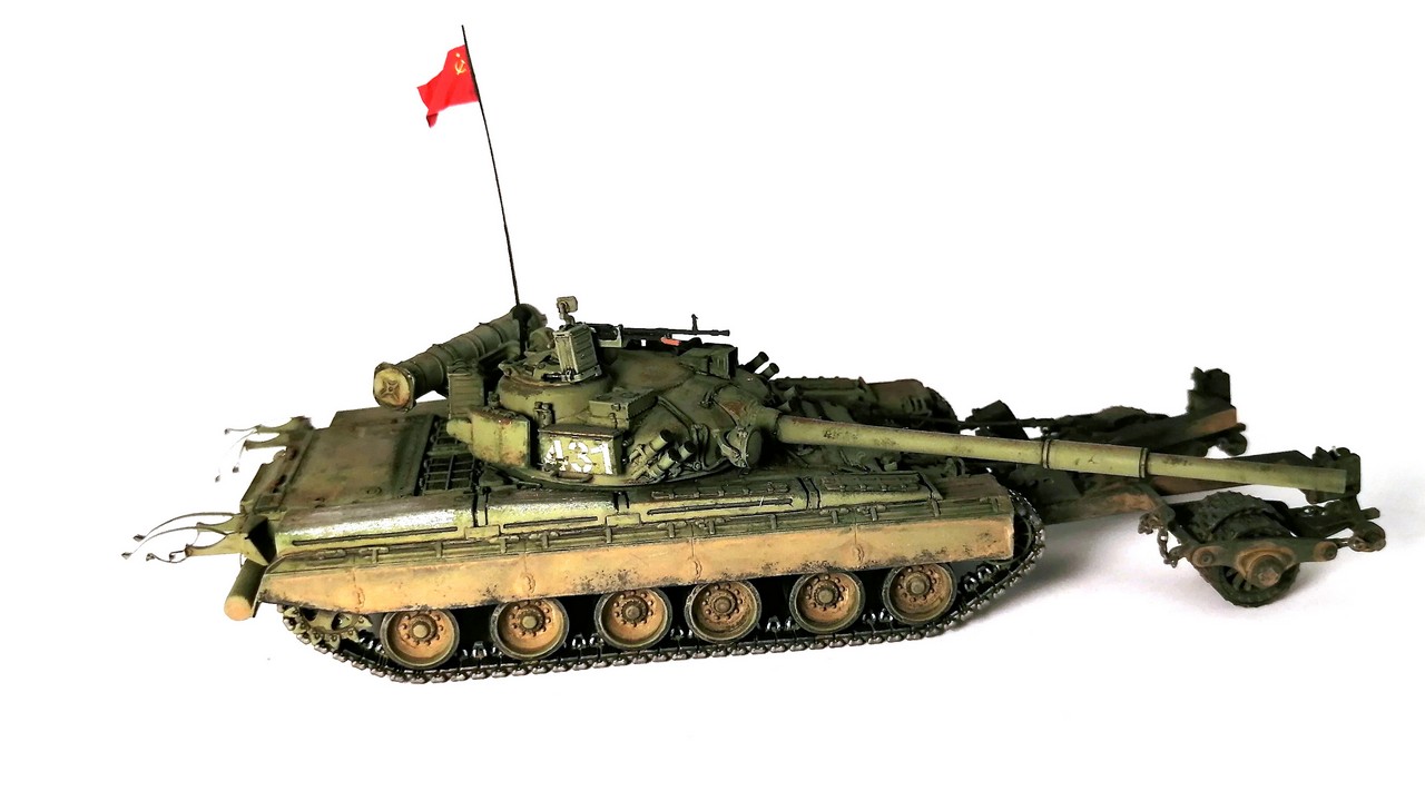 Как и планировалось, легенда модели: 1995 год, большие потери в Новогоднем штурме Грозного традиционно призвали на службу машины «не-первой-линии». Этот Т-80Б ещё со времён СССР ждал своего часа на базе хранения. В 1995 году он был брошен на борьбу с бандформированиями Северного Кавказа.