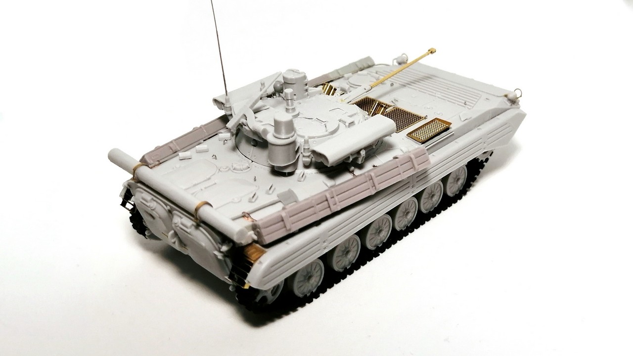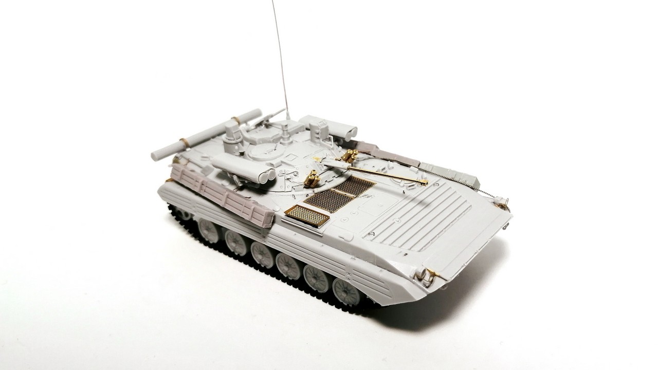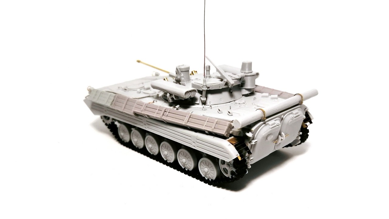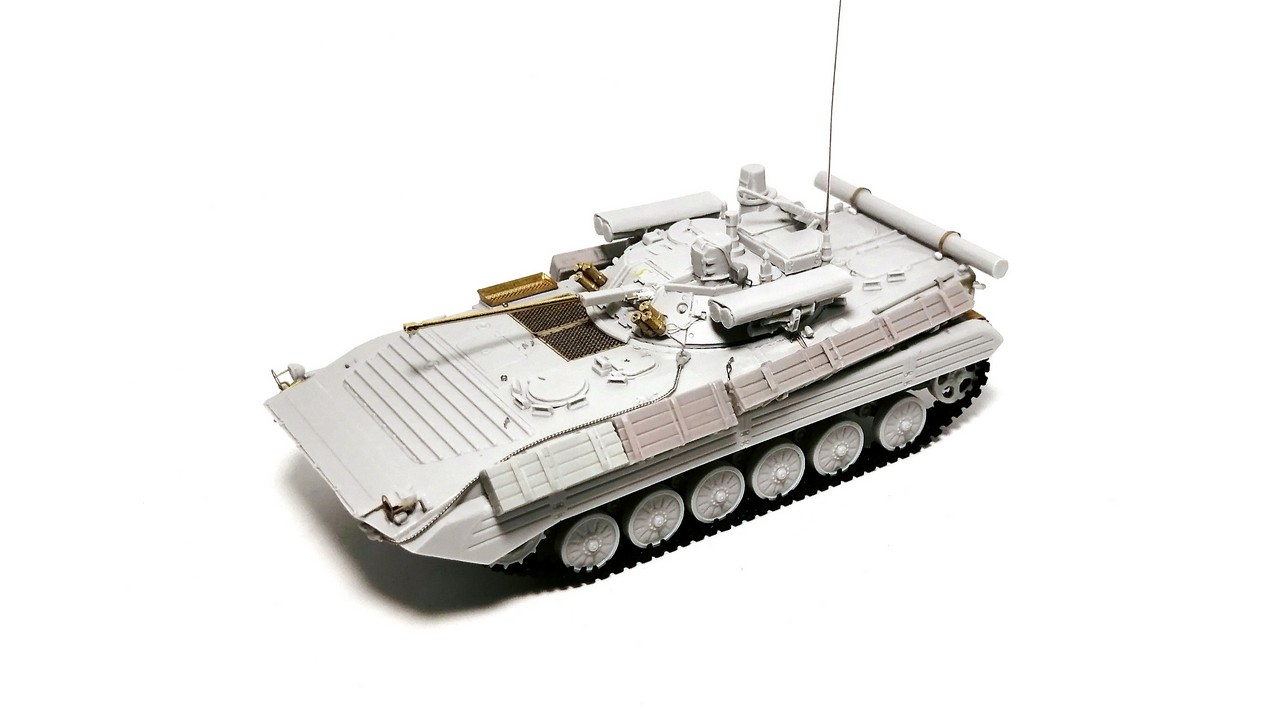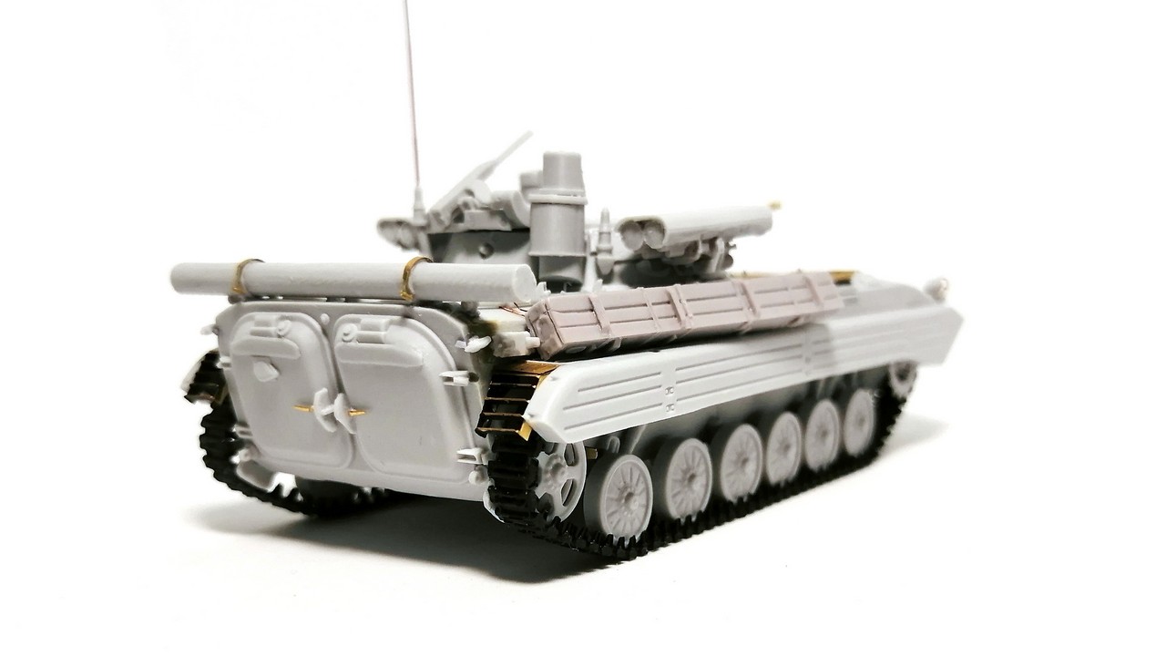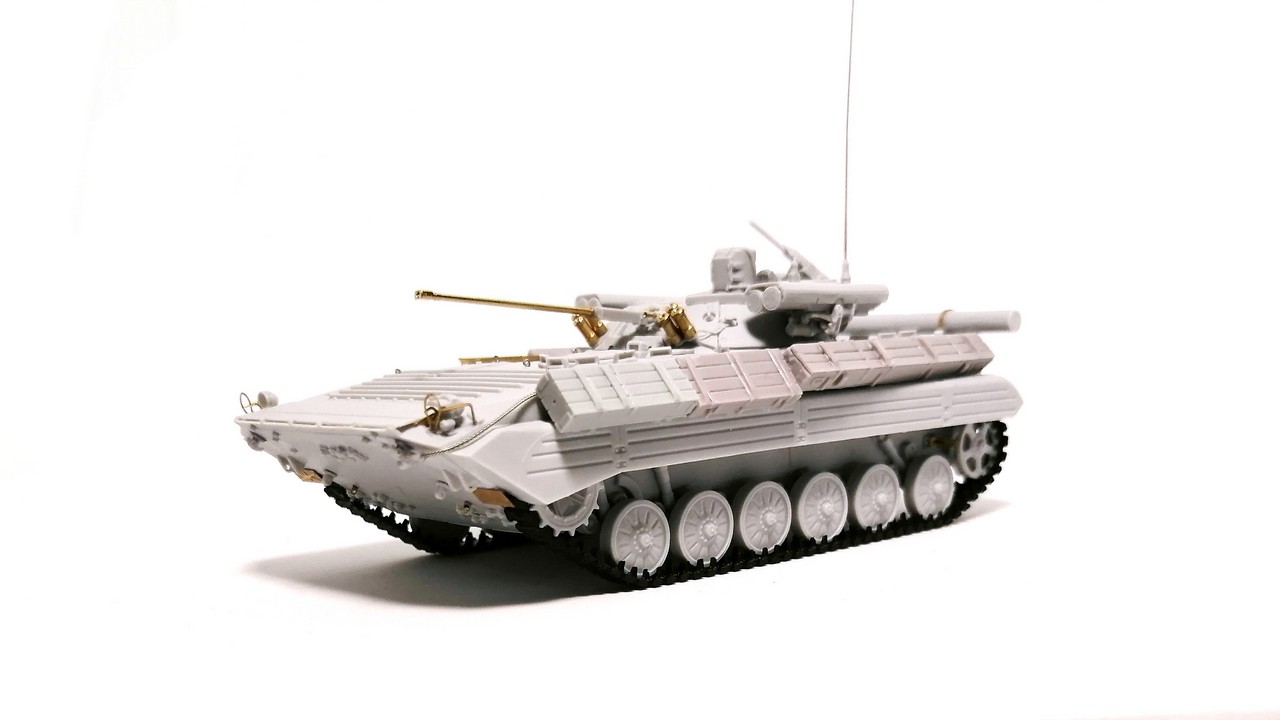 Второй моей моделью от «Огурца» из семейства советских боевых машин пехоты 1/2 поколения стала модификация БМП-2М. Смола, травление, точёный ствол, декали – полный «фарш»!