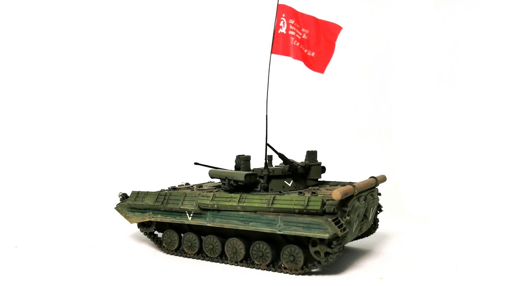 И второй моделью, полноценной посвященной теме СВО, стала БМП-2 от «Огурца»! На этот, раз, правда – БМП-2М с модулем «Бережок».