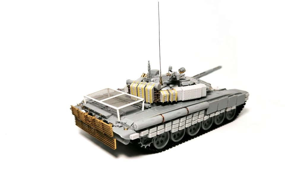 Основной упор в данной модели сделан на дополнительное бронирование силами экипажа из материалов, доступных летом 2022 г. Т.к. у нас Т-72Б3 обр, 2011 г, то далеко не все элементы «улучшения боевых характеристик» - Т-72Б3 обр. 2016 г. – могут быть установлены. Наиболее полно – на башне.