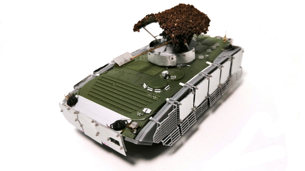 Война – это экономика! (с) Поэтому логично, что в дело надо пускать всё, модернизируя и повышая характеристики устаревших образцов. Не «миновала сия чаша» и машины семейства БМП-1. Тем более, что вариант БМП-1АМ «Басурманин» был разработан ещё до СВО. Сейчас все машины штатно оснащаются узлами для крепления дополнительного бронирования. Что-то идёт прямо с ремзаводов, что-то дооснащается уже в войсках. Вот такую добронированную версию я и решил сделать.