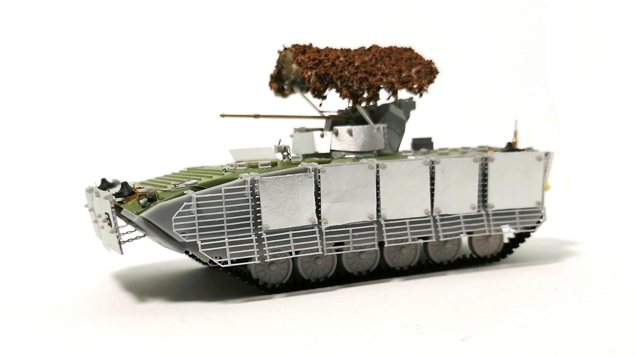 Итак, всё это берётся, складывается в коробку, «некоторое» время трясётся и на выходе получаем «довоенный» вариант БМП-1АМ. Но нам то этого мало!