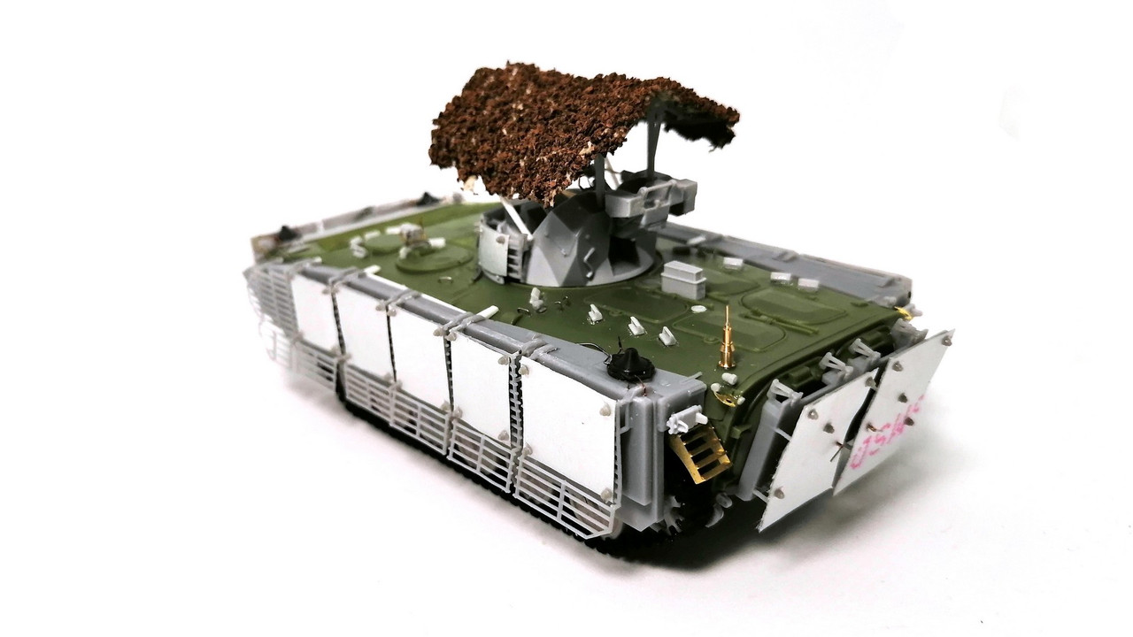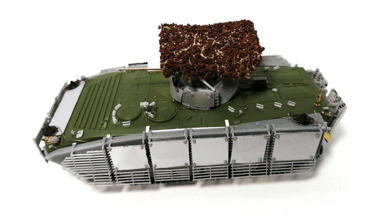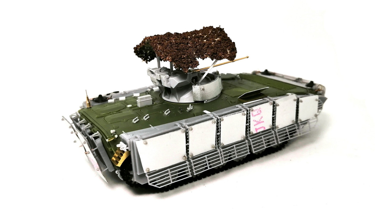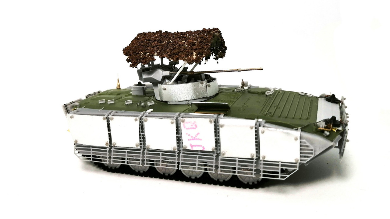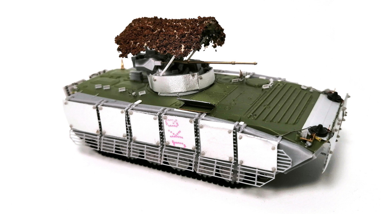 Поэтому с помощью наших друзей из группы ВКонтакте – M.H.D. collect – я взял комплект дополнительного бронирования на БМП-1/2 с решётками. Всё это напечатано непосредственно на 3D принтере. Выглядит симпатично и аккуратно.