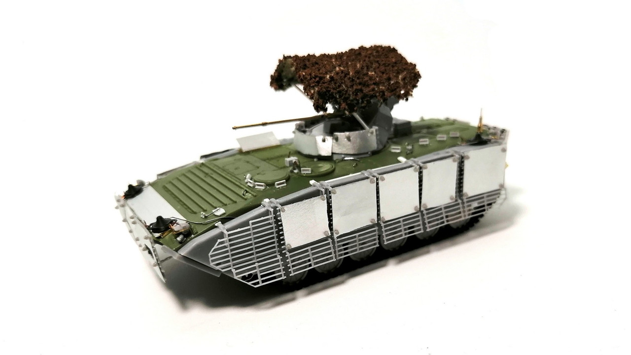 Война – это экономика! (с) Поэтому логично, что в дело надо пускать всё, модернизируя и повышая характеристики устаревших образцов. Не «миновала сия чаша» и машины семейства БМП-1. Тем более, что вариант БМП-1АМ «Басурманин» был разработан ещё до СВО. Сейчас все машины штатно оснащаются узлами для крепления дополнительного бронирования. Что-то идёт прямо с ремзаводов, что-то дооснащается уже в войсках. Вот такую добронированную версию я и решил сделать.